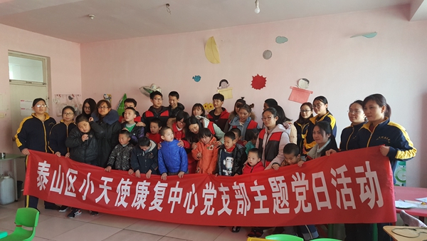 适逢泰安市创建文明城市的大潮中,中心党支部联系泰山医学院第二临床医学院志愿者,于12月6日上午一行十余人来到泰山区小天使康复中心看望慰问克服身体缺陷,积极康复的贫困残障儿童。