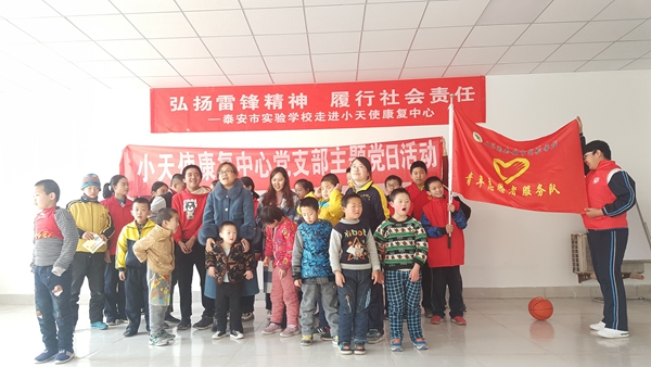 活动前,老师讲解了活动的目的和意义,表扬了同学们的爱心行动。在慰问活动中,同学们首先献爱心,送上代表师生的玩具、篮球、本子和零食等爱心礼物。老师把队员们分成若干小组,与中心的孩子开心互动,他们有的互相分享喜怒哀乐、有的表演节目给残疾儿童、有的一起游戏,大家都玩得不亦乐乎。下午两点开始,慰问活动持续了将近两个小时。时间过得飞快,眼看就要离开了,队员们都依依不舍,中心负责人李红主任说:“泰安市实验学校真是一所好学校,培养出这么多有爱心的学生”。