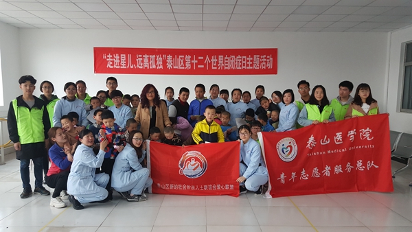 在4月2日第十二个世界自闭症日的当天,泰安小天使康复中心及泰山医学院的志愿者们带领这群特殊的孩子开展了“走进星儿,远离孤独”的主题活动。在活动中,我们共同完成了多个游戏,让这些特殊的孩子也可以与正常的儿童一样开心玩耍,享受童年.