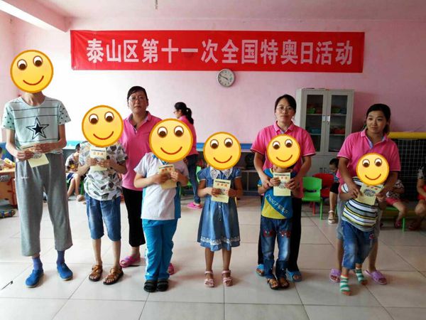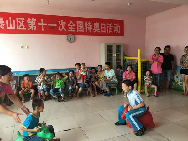 一首《魅力无限》拉开了活动序幕,欢快的舞蹈很快带动起孩子们的积极性。巩帅小朋友的拍球运动,真正彰显了体育的竞技精神和活力。像是赛跑和爬行这样的活动有体能和技巧的要求,对一些智力残疾儿童来讲有难度,但在中心老师的鼓励和帮助下,孩子们都努力尝试着这些从未体验过的趣味游戏,增加感知活动和肌肉活动以提高孩子们的肢体协调能力,挥洒汗水的同时,也收获了属于自己的快乐和掌声。现场气氛热烈,精彩互动,爱心满满,康复中心还给每个孩子发放了作业本等奖品,整个泰山区“第十一次全国特奥日”活动也取得了圆满成功,一场不选出冠军的比赛,让大家看到了智力残疾学员身上的那份认真和可爱,更感受到了交流和融合对于智力残疾人的重要意义。