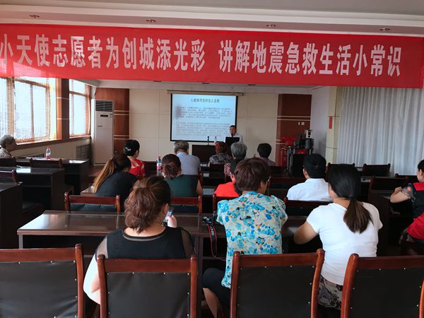 为贯彻泰山区开展“情暖泰山,银龄工程”活动精神,8月18日,小天使康复中心联系岱庙街道金星社区,来到金星社区三楼人口教室为社区老年人开地震急救生活小常识知识讲座,受到了广大老年居民的喜爱。