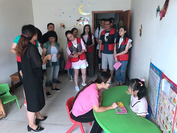在康复中心李红主任的指引下,大家一起参观了家长培训室、活动室、康复训练室等,并询问儿童的日常生活、治疗康复情况,了解到残疾儿童的基本情况和患儿家庭面临的困境。随后同孩子及家长们进行交流联谊,一同观看了孩子们表演的节目,并和孩子们一起拍球、玩彩虹伞游戏,现场氛围异常温馨。