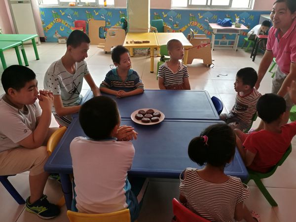 好丽友“十点集善”项目旨在关注特殊儿童的成长健康,是通过在每天上午十点的课间为特教学校残障儿童提供爱心能量加餐,来改善其营养状况,陪伴其快乐成长的公益计划。2017年,好丽友联合中国残疾人福利基金会开展“十点集善”项目,首批捐赠价值110万好丽友派产品及资金,为河北、山东、江苏三省份的特教学校在校学生提供爱心加餐。6月初,泰安市泰山区小天使康复中心接收到这批爱心物资,并与当月开始每天给孩子们发放。